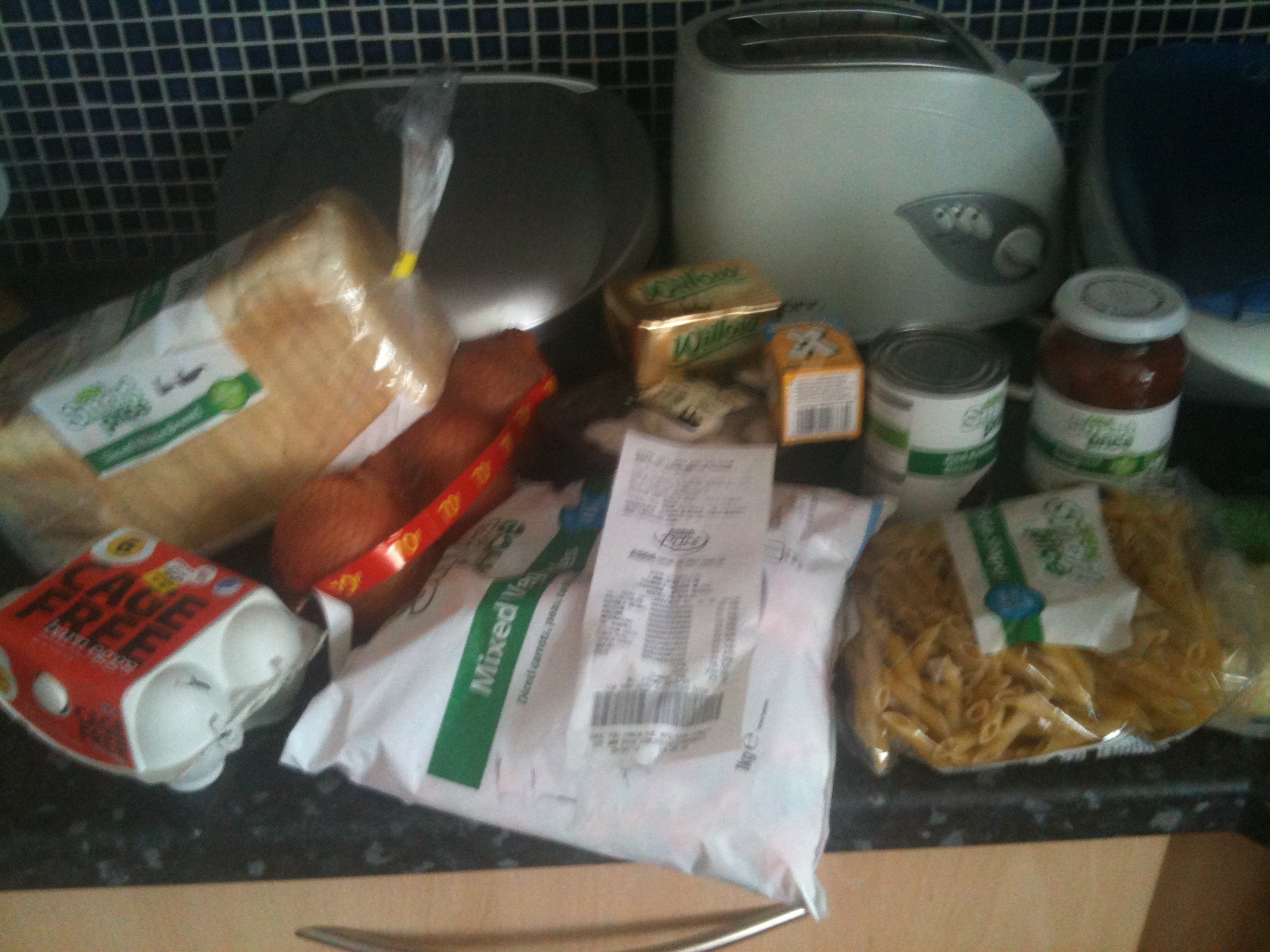 Finally, after deliberating, calculating and reassessing, and finally checking out, and £6.00 later, I had decided on my first 6 days worth of shopping. The 30 minute walk back was worrying as I hoped that my frozen vegetables wouldn’t defrost too much, and my eggs would make it safely in one piece!